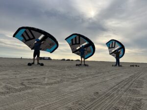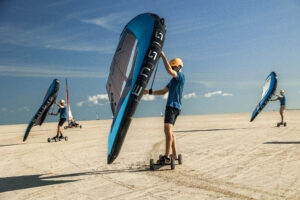 Wings er en helt ny sport, der kommer mere og mere frem i Europa. Wings er oprindeligt designet til at være på vand, men OurStuff har udviklet vores helt egen landboard, der er velegnet til også at køre på stranden.